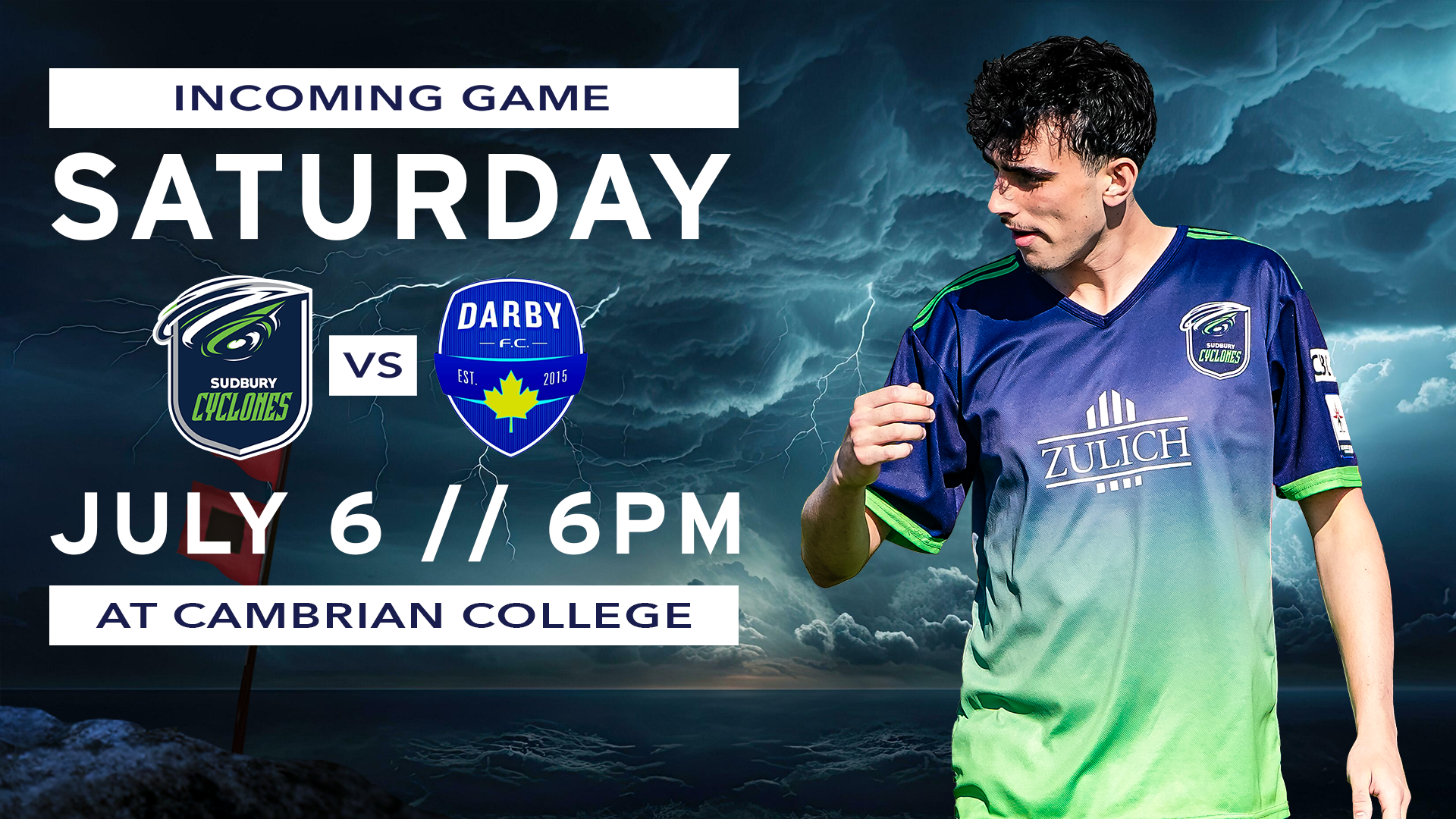 (Greater Sudbury, ON) – The Sudbury Cyclones return home this Saturday to face off against Darby FC. Kick-off is set for 6pm at Cambrian College.