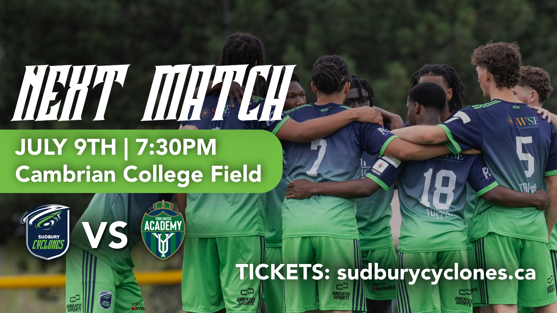 (Greater Sudbury, ON) – The Sudbury Cyclones will host three home matches this week, as all the squads enter some key fixtures near the end of the season. The Cyclones men will kick off home action on Wednesday, July 9th at 7:30 p.m., welcoming York United Academy to Cambrian. Saturday, July 12th at 7:00 p.m. will see the Cyclones women face Master’s FA at Cambrian, and finally on Sunday, July 13th at 2:00 p.m., the Cyclones L2 men will take the Laurentian pitch to play Vaughan Azzurri L2.