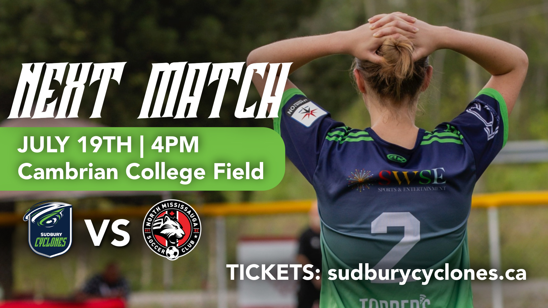 Single-game tickets are available online HERE, and can also be purchased at the gate at Cambrian College for Saturday’s Cyclones’ women match. Prices are $20 for adults, $15 for students, and $10 for children 12 and under.