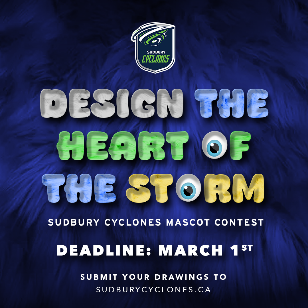 (Greater Sudbury, ON) – The Sudbury Cyclones are thrilled to announce the launch of their “Design the Heart of the Storm: Sudbury Cyclones Mascot Design Contest”! We’re calling on all fans to get creative and design the team’s official mascot for the 2025 season and beyond.