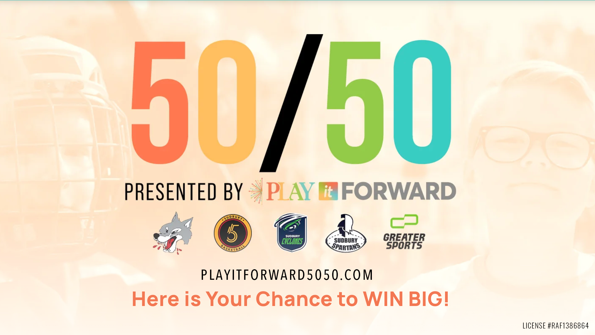 (Greater Sudbury, ON) – The long-standing tradition of fan participation through 50/50 raffles at SWSE sporting events now includes an online 50/50 community-wide raffle through Play it Forward, www.playitforward5050.com.