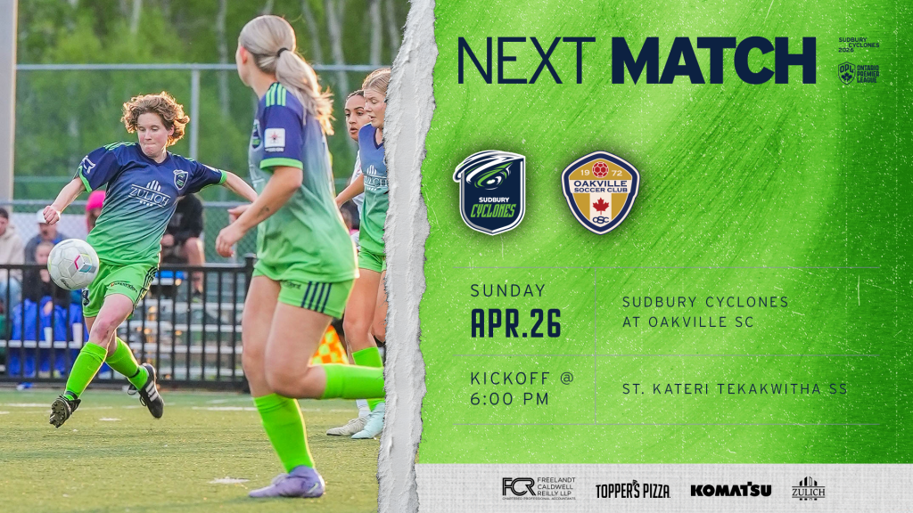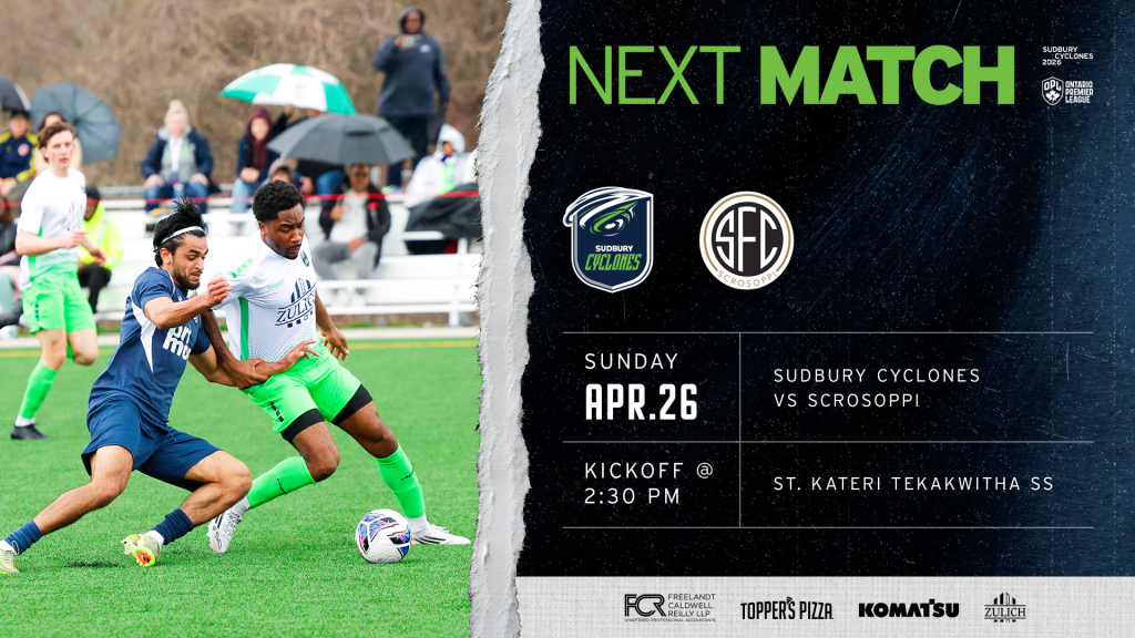 The Sudbury Cyclones are set to play their second match of the 2026 campaign this Sunday, April 26 at 2:30 PM.